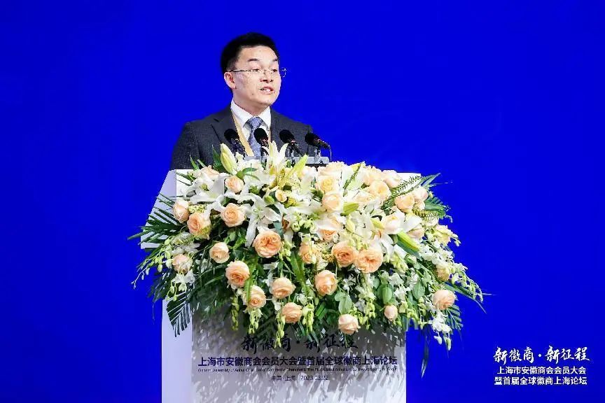 上海市安徽商会会长、景域驴妈妈集团董事长洪清华在致辞时表示,徽商要用特有的徽骆驼精神,转变发展模式,加快产业升级,向产业创新、技术突破的制高点不断发起新一轮冲锋,“中小企业走好‘专精特新’发展之路,‘智改数转’提升之路,大企业瞄准世界一流,在中国式现代化的各个领域从跟跑、并跑转向领跑,勇立潮头,不懈奋斗”