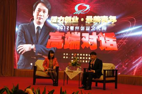 “一开始创业就要植入社会责任和诚信的基因。只有这样,才能可持续。这是我10多年来总结出的经验。”4月24日下午,全国青联委员、中环投资集团董事长余竹云作为衢州人受邀出席2012浙江省衢州市创业文化周开幕式,并作为“企业家高端对话”活动主讲人与衢州青年交流。他的那句“开始创业就要植入社会责任基因”,让所有在场的人感到创业的责任。此次活动以“活力创业,最美青年”为主题,由衢州市委宣传部和团市委联合举办,衢州市委书记赵一德出席开幕式并讲话,市领导陈新、居亚平、李剑飞等出席开幕式,市委常委、宣传部长诸葛慧艳主持开幕式。