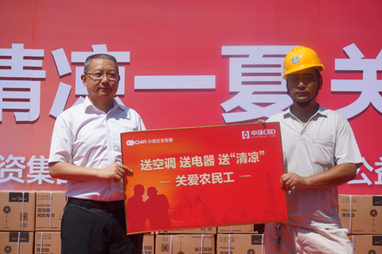 8月9日上午10点,2016年中环投资集团关爱农民工活动在中环CBD项目工地如约举行,CBD项目150名农民工兄弟汇聚一地。合肥经开区总工会主席、企业党委书记陈龙章,中环投资集团执行总裁乔晓戈、副总裁高剑,中建四局六公司党委书记李民、总经理安佳伟等出席活动。