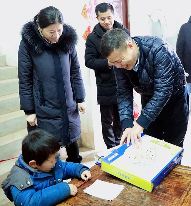 当安徽中环创新绿色建筑产业集团总经理蔡明及“大爱中环”的志愿者们在驻村扶贫专干的引领下来到这个家庭时,也不禁为之心酸,堂屋里仅有一张方桌、几把小椅子,除此之外,连一件像样的家具都没有。而这张方桌,不仅供一家人日常吃饭使用,平时小震宇也用来读书写字。