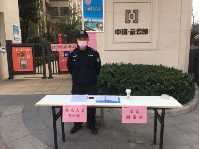图丨中港物业设立门岗为进出业主测量体温