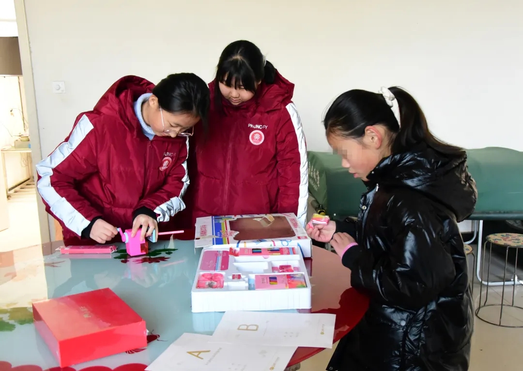 图 | 梦茹和中环北大爱心大使们一起拆开试用新文具