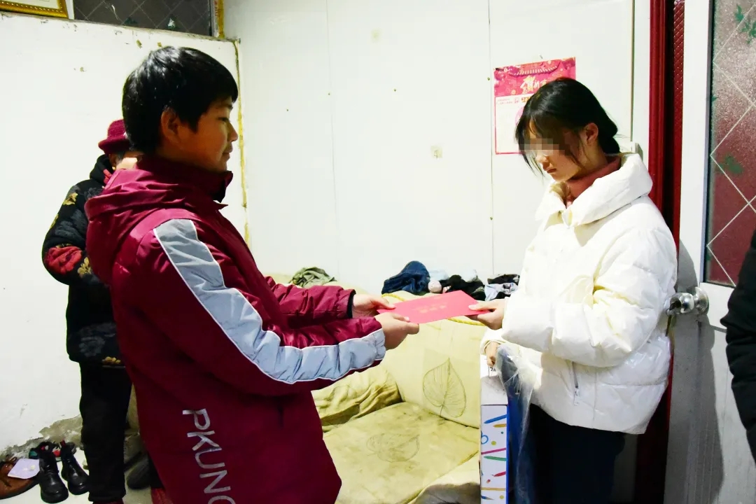 岁暮天寒,风烈翻腾吹竹哨,冰凌摇荡响铃当,“大爱中环 学子同行”od平台入口官网暖冬行动仍在继续。今天是第十站,od平台入口官网、北大新世纪阜阳附属学校的爱心大使们来到了阜阳市三合镇中心学校初二学生若若(化名)的家中。