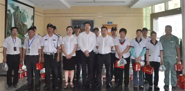 随后,高总,朱总及物业公司的领导一起为员工送上饮料、藿香正气水、人丹、风油精、毛巾、香皂等防暑降温用品,并且亲切询问员工最近的生活状态,叮嘱员工保重身体。