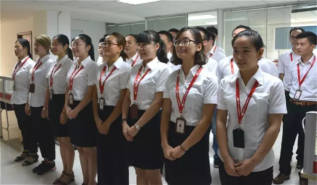 中环智慧物流公司的员工早就迫不及待的鼓掌欢迎,并高喊着“责任源自内心”的口号,士气满满的迎接高总等人的到来。