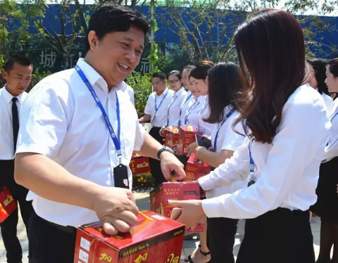张总笑容满面的为员工发放清凉物资
