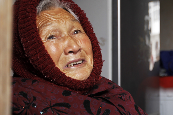 老人目送爱心大使的离开,留下了不舍得眼泪