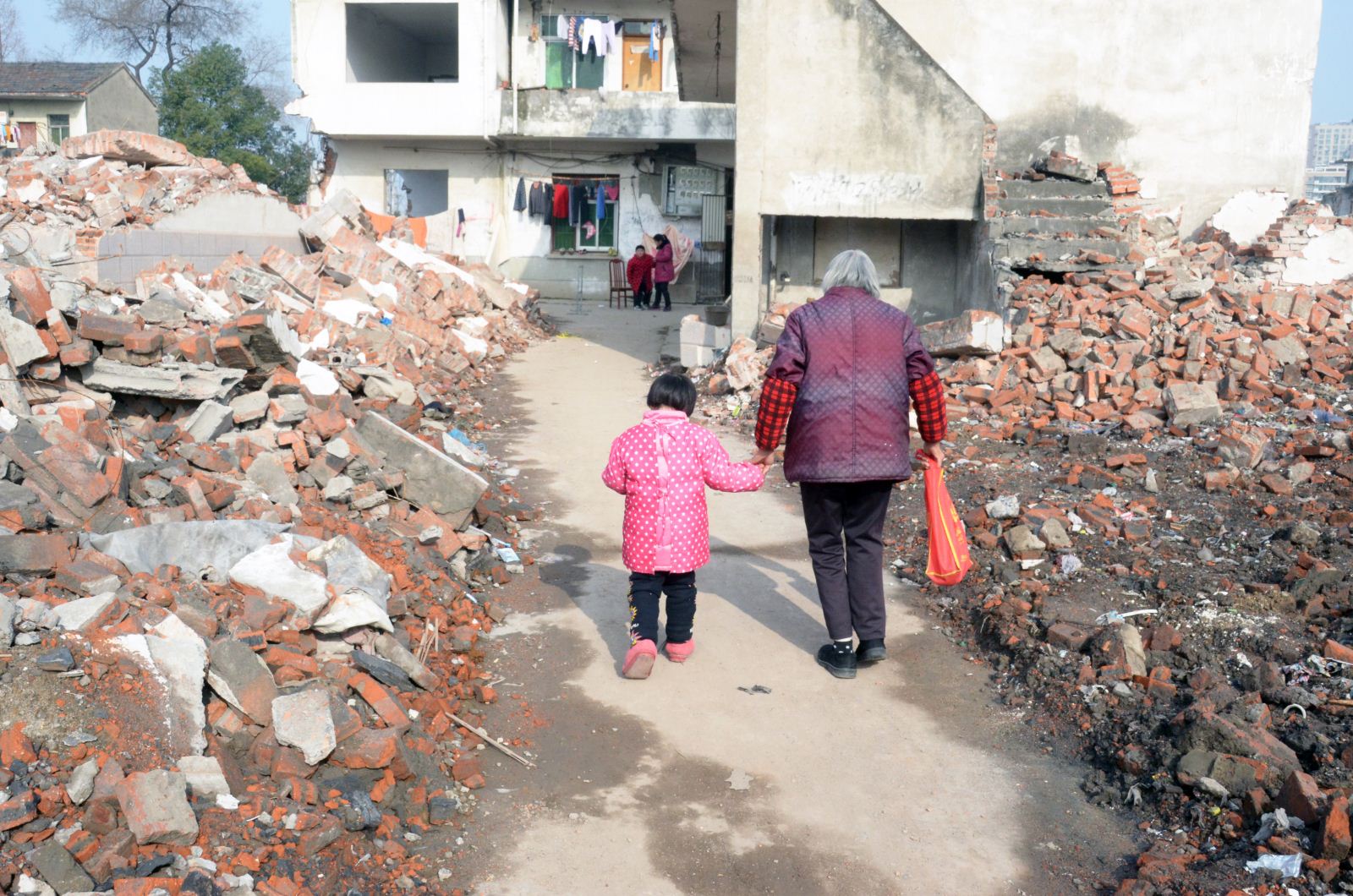其后,志愿者来到北京路与高铁路交叉口附近的小琴家,只见房子的周围全是拆迁的瓦砾和推倒的砖墙,家里面积狭小,十几平米的地方挤着两户人家。放下两张床之后,空间所剩无几,就这样他们租住的房子也将要拆迁,小琴一家还面临着租房的问题。