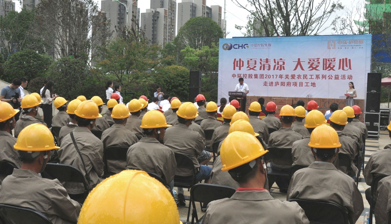 据了解,中环集团一直关注农民工的生活品质。为项目工地农民工宿舍免费装空调;为工地送去防暑降温用品;六一儿童节,为全省农民子弟学校捐赠教学器材;在工地上放电影、送书籍,筹建图书室、阅览室、培训学校,送文化到工地;在中环艺术馆南侧建起雕塑艺术广场,以中环城项目建设者为原型塑造了20尊农民工雕像,为建筑工们送去尊严。在关爱城市建设者的道路上,中环集团不仅仅关注自家工地,更将爱心传播到全市所有的建设者。在全市范围内,带68个优秀农民工家庭免费游览上海世博会;组织免费体检,做健康讲座,送去卫生用品。举办农民工夜校,将知识和娱乐送进全市各大重点工地。为构建和谐社会、创造美好生活贡献力量。