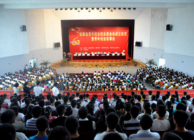 9月18日,安徽省青年创业就业基金会成立仪式在合肥学院大礼堂举行。安徽中环投资集团公司董事长余竹云先生作为基金会原始发起人之一应邀出席揭牌仪式。团省委领导班子、省直有关部门负责同志以及部分青年创业典型代表出席了仪式。