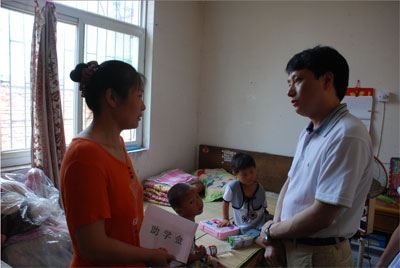 7月5日上午,安徽中环投资集团公司董事长余竹云、副总经理黄少铭在省希望工程办公室、合肥市监狱管理局领导的陪同和带领下,探望了“中环竹云助学基金”救助的两个困难家庭。