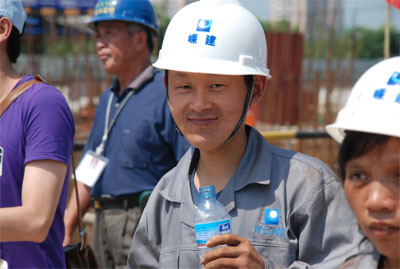 余竹云总经理看着建筑工人们顶着烈日热火朝天的工作,也走进施工现场,并亲手将一瓶瓶矿泉水送到工人师傅的手中。工友们都非常感动,纷纷表示一定不辜负中环公司的关怀与业主的期待,保证按质按时完成施工任务。