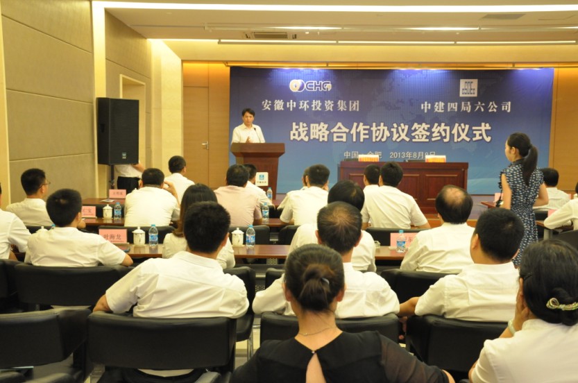 中建四局六公司罗战平总经理在致辞中表示:签约是双方强强结合、互利共赢的开始,公司将秉承“诚信经营、品质立市、优势互补、互利共赢”的理念与中环集团开展多方面的合作与交流,积极参与安徽省大建设,助力合肥成为中部崛起的重要支点,为合肥的快速高质量大发展做出新的贡献!
