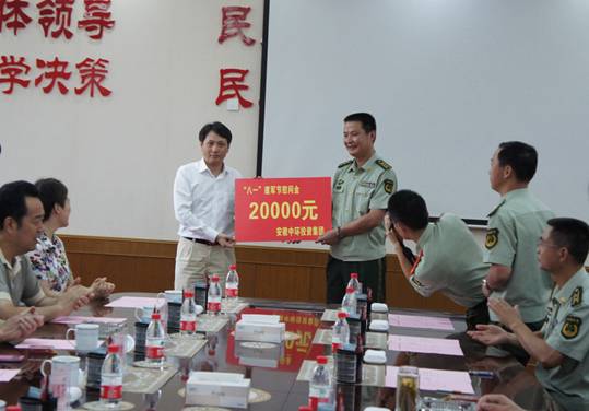 余竹云董事长向武警安徽总队赠送2万元慰问金