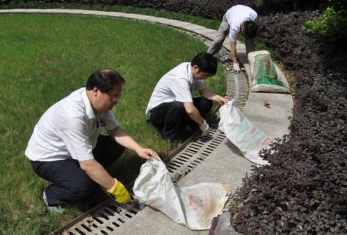 为迎接“七一”,纪念建党92周年,贯彻落实经开区企业党委“驻区企业文明创建工作会议”精神,中环集团党委于6月28日上午,开展迎“‘七一’、创文明,党员志愿服务进社区”活动,组织52名党员、入党积极分子,以及自愿参加劳动的领导和员工,走进“中环城·云邸”和“中环城·紫荆公馆”两个小区,为小区业主发放“文明创建倡议书”,同时,开展义务劳动,美化小区环境,铺鹅卵石、清理排水沟污泥杂物、捡垃圾。在30多度的高温下,他们头顶烈日,不怕苦、不怕脏、不怕累,全身心投入到紧张而又快乐的劳动之中。有的汗流浃背,有的手掌被磨破,有的手皮被碰破……,在2个多小时的劳动中,共发放“文明创建倡议书”700多份,清理排水沟400多米,清理出污泥杂物60多袋,铺鹅卵石200多米,用双手创建文明果,用汗水浇灌文明花,为小区文明创建贡献力量,向建党92周年献礼,受到物业公司、小区业主的热烈欢迎和好评。