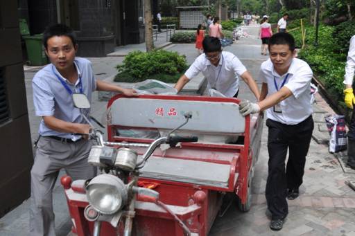 在“中环城·紫荆公馆”小区将垃圾运走