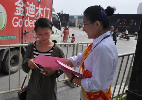 在“中环城·紫荆公馆”小区向业主发放文明创建倡议书