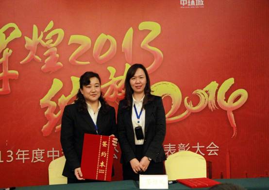商业管理公司总经理朱玉娟与行政人事企划副总经理赵晖签订目标责任书