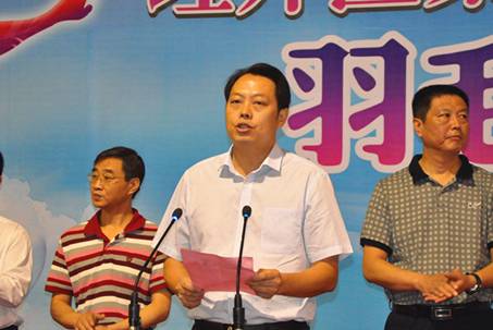 接着在主持人的邀请下,合肥市体育局副局长贾伟宣布第三届“中环杯”羽毛球大赛正式开幕。最后进行的是裁判员、运动员相继宣誓,他们表示积极服从领导,积极遵守比赛规测,力争在本届“中环杯”羽毛球大赛上取得优异的成绩。