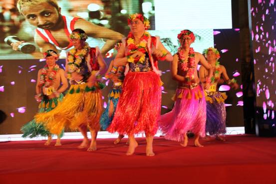 整台晚会节目高潮迭起,精彩纷呈,让忙碌了一年的中环员工得到了彻底地放松。商业管理公司的《夜光舞》借助特制的荧光道具,配合poping 风格的音乐,灵动绚丽,舞动出奇妙的生命之歌;物业管理公司的《军体拳表演》,落脚霹雳轰鸣、坚定有力、飒爽英姿;中恒项目公司的小品《唐伯虎点房产》老剧新演,可谓是才子佳人,笑点频出;舞蹈《DANCE MEDLEY》装扮华丽,充满了动感和活力;员工家属王子萱小朋友和父亲带来的相声《吹牛》,惹得全场观众捧腹大笑;经营管理中心带来的舞蹈《春天花会开》,帅哥们一上场就凭借一身草裙,亮杀了所有观众的眼睛。当晚最有亮点的还数董事长余总即兴演唱的一首《冬天里的一把火》,全体高管也纷纷上台合唱及伴舞,高歌热舞,魅力四射,热情得就像冬天里的一把火,点燃了全场的激情。夸张搞笑的造型、热情洋溢的演出成为当晚的一大亮点。