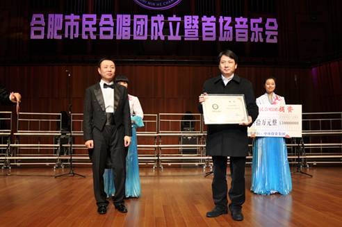 本次合肥市市民合唱团得由中环投资集团的独家冠名赞助。演出前进行了现场捐资仪式,董事长余竹云被聘为合肥市民合唱团的名誉团长。