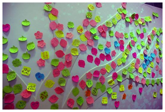 中环购物中心北门厅内,树形的“爱情告白墙”上写满了来往市民的爱情宣言,“老公,永远爱你!”“戒烟戒酒活到100岁,伺候你!”……中庭正中近半人高的圆形舞台,装点得格外温馨。另一边,徽商广播FM100.3的透明直播间也搬到了购物中心,现场播报整个活动过程,徽商广播的明星主播们更是齐现活动现场,与所有参与活动的市民充分互动、联欢。
