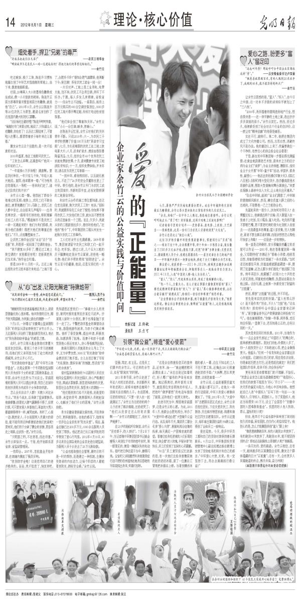 “他们得到的已经不只是钱,而是爱的纽带,希望的符号。” ——余竹云