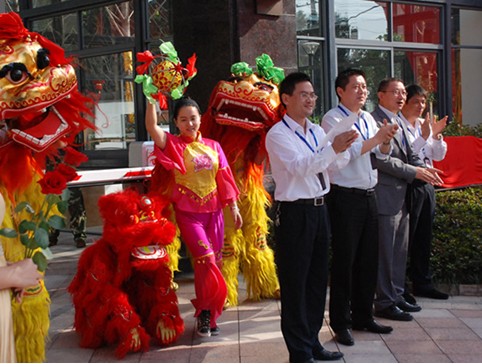 揭牌仪式后,中环投资集团执行总裁乔晓戈宣布中环城紫荆公馆盛大开园,并亲手为第一批入园领房业主送上鲜红的玫瑰,一时间锣鼓欢腾,金狮狂舞,礼炮齐鸣。