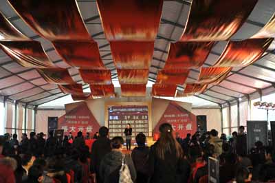 在开盘选房正式开始后,销售现场的气氛达到了沸点,在每一位客户认购后,现场工作人员均会准确的报出销售信息并用掌声为成功选房的客户表示感谢和恭贺。虽然到场有近千名客户,但是在工作人员精心组织和耐心引导下,选房流程有条不紊的进行着,在工作人员第一次点燃恭贺礼炮的时候,这意味着在不到一个小时的时间就已经有100套中环城房源被成功定购。
