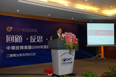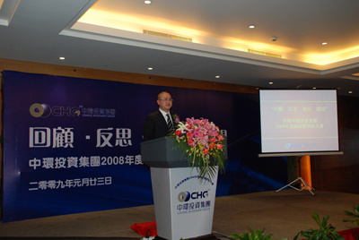 2009年1月23日下午,离传统的除夕佳节还有两天,在明媚的阳光和刺骨寒风之下,以“回顾、反思、责任、展望”为主题的中环投资集团公司2008年度总结暨表彰大会在元一希尔顿元福厅隆重召开。中环投资集团公司及其下属子公司的各级领导及全体员工参加了此次大会。会议由集团公司副总裁陈磊先生主持。