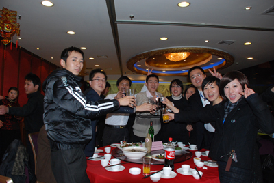 大会结束后,全体中环同仁移师西湖蓝宝大酒店,中环人济济一堂,共同举杯为过去的2008圈上完满句号,为2009的辉煌开启斟满希冀,共祝中环2009更辉煌,中环明天会更好!