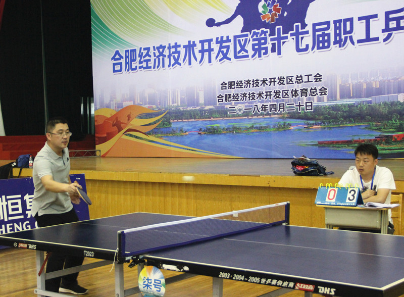 4月20日,合肥市经开区第十七届乒乓球比赛在合肥世界外国语学校精彩上演,来自入区企业、大专院校、派驻机构和区属单位的近40支代表队,400余名乒乓球爱好者,本着“友谊第一、比赛第二、以球会友、切磋技艺”的体育精神,展开了一场异彩纷呈的竞技比赛。od平台入口官网工会组织员工代表队积极参与比赛。