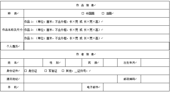 新时代·新征程——庆祝建国七十周年首届安徽中国画、油画学术大展登记作品信息表