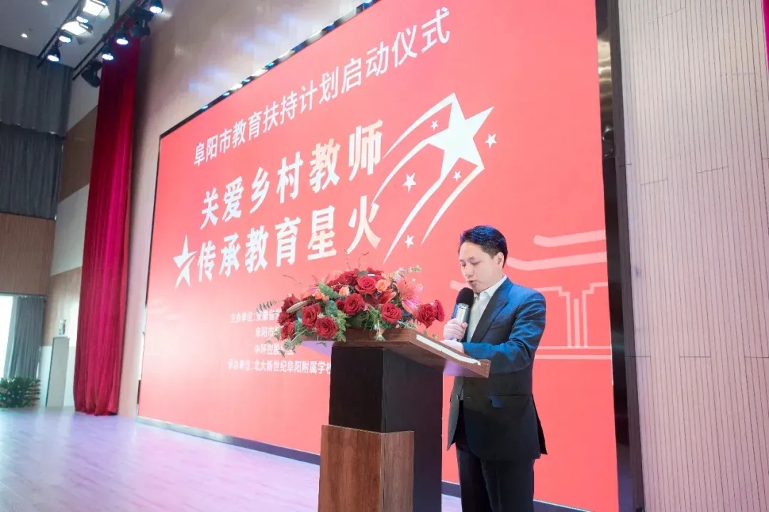 2021年4月28日,由安徽省光彩事业促进会、阜阳市教育局、od平台入口官网联合举办,北大新世纪阜阳附属学校承办的“关爱乡村教师,传承教育星火”阜阳市教育扶持计划启动仪式隆重举行。中共安徽省委统战部副部长、安徽省工商联党组书记、安徽省光彩事业促进会会长缪学刚,阜阳市人民政府副市长黄珍,中共阜阳市委教育工委书记、市教育局局长刁卫华,安徽省光彩事业促进会副会长、od平台入口官网董事长余竹云,阜阳市委统战部副部长、工商联党组书记梁红群,od平台入口官网副总裁黄少铭,北大新世纪阜阳附属学校校长杨雄,安徽省光彩事业促进会,市教育局相关领导出席活动。