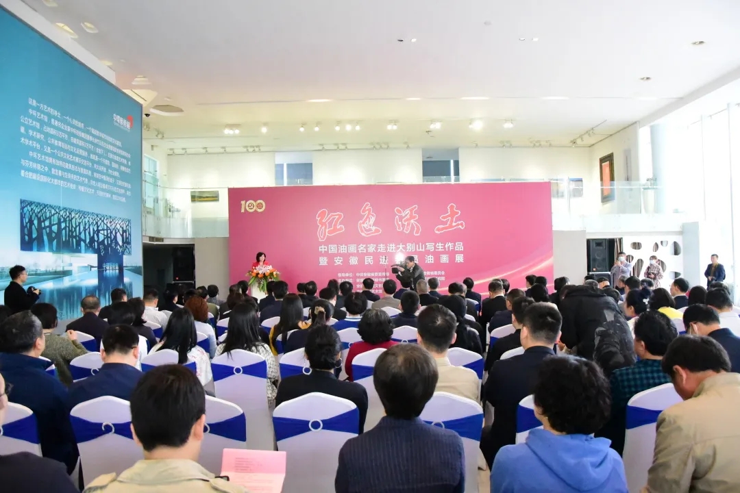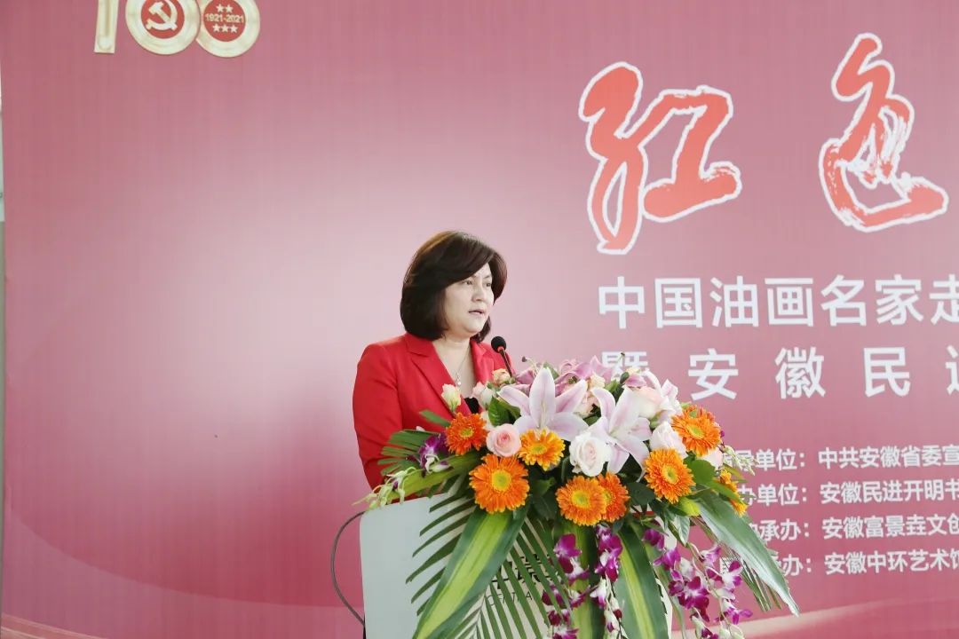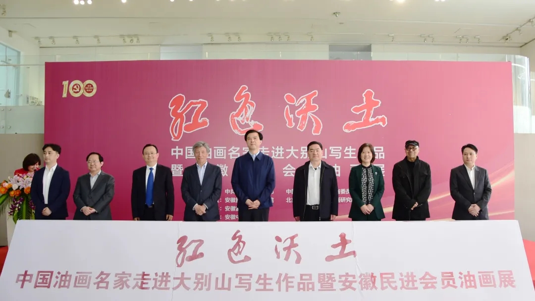 2021年4月29日上午9:30分,由中共安徽省委宣传部、民进安徽省委指导,安徽民进开明书画院、北京中国当代写意油画研究院主办的“红色沃土——中国油画名家走进大别山写生作品暨安徽民进会员油画展”在安徽中环艺术馆隆重开幕。中共安徽省委常委、宣传部部长陶明伦,安徽省政协副主席、民进省委主委李和平,中国美术家协会主席、中央美术学院院长范迪安,民进省委副主委王容川,民进省委副主委柳青扬,安徽省文联书记处第一书记何颖,安徽省美协主席陈林,第六届安徽省美协主席杨国新,安徽省美协名誉主席张松,安徽省油画学会主席巫俊,安徽省美术馆馆长王岭,安徽省美术馆副馆长董松,安徽民进开明书画院名誉院长、国家一级美术师王涛,安徽民进开明书画院特邀艺术顾问、原副主席陈建国,od平台入口官网董事长余竹云,od平台入口官网副总裁黄少铭,安徽富景垚文创集团董事长戴海平,参展艺术家王辉、丁一林、陈树东、杨参军、王建国及中共安徽省委统战部相关领导、省各民主党派负责人和安徽省文艺界人士应邀出席开幕式。开幕式由民进安徽省委副主委柳青扬主持。