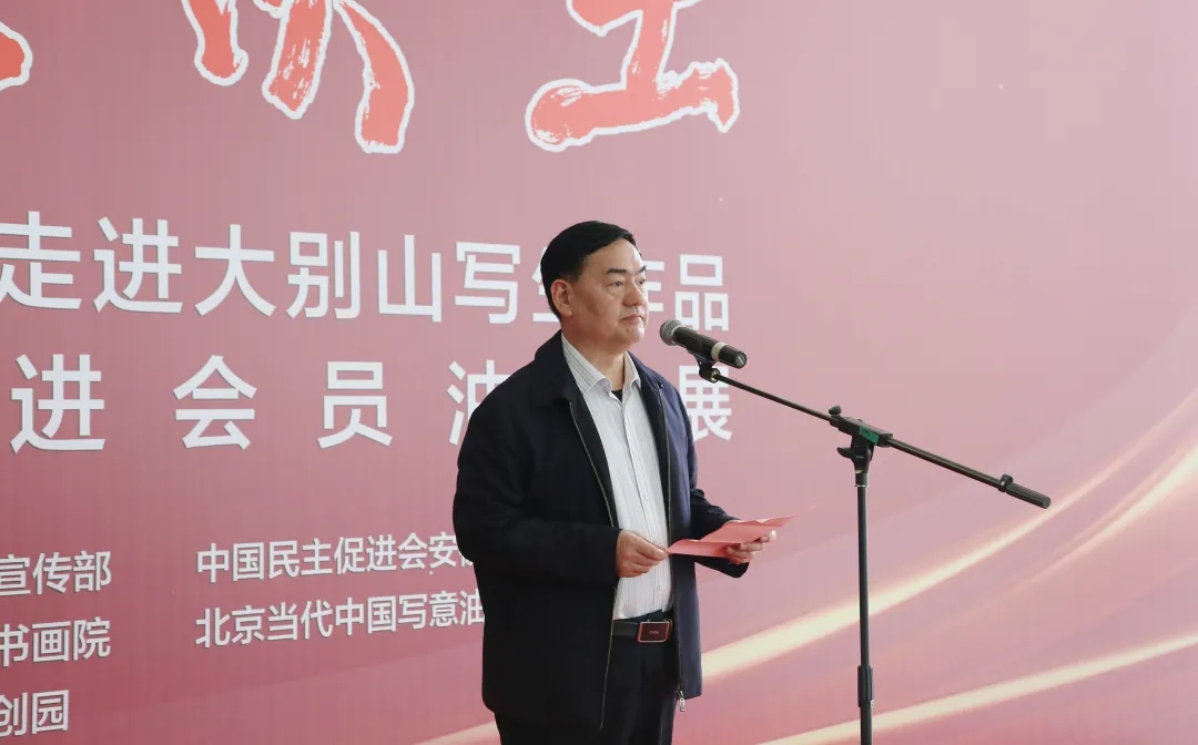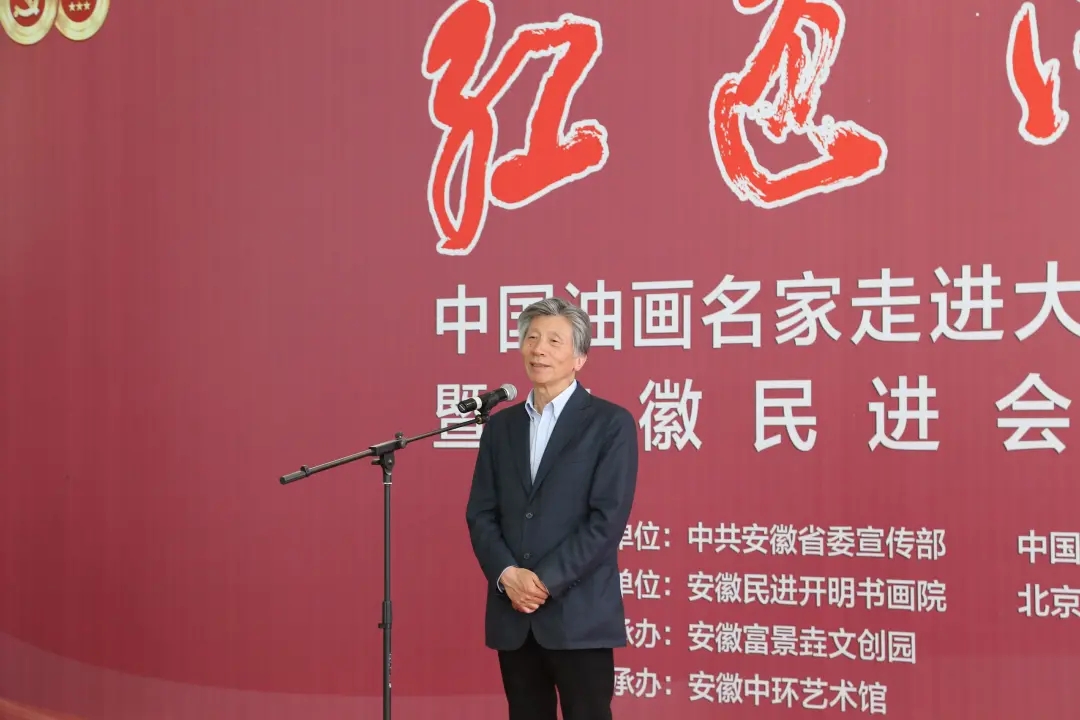 安徽省政协副主席、民进省委主委李和平代表民进安徽省委致开幕词。他首先向莅临开幕式的各位领导和来宾表示热烈欢迎,向参加本次展览的各位油画名家、艺术界的朋友表示衷心感谢!他表示,各位油画名家不畏严寒、不畏艰辛,于2020年12月,在零下三度的恶劣天气深入安徽大别山采风创作,大家沿着五年前习近平总书记来安徽大别山走过的路,勤奋挥笔,创作了80余幅不同寻常的巨构佳作。这些作品既有对大别山红色历史的缅怀,又有对大别山绿色生态的欣喜,还有对新时代老区人民在奔小康的金色道路上取得成就的歌颂。这是一次不同寻常的艺术采风活动,更是一次中国油画家面对红色沃土,体现出的一次内心升华的致敬之旅。