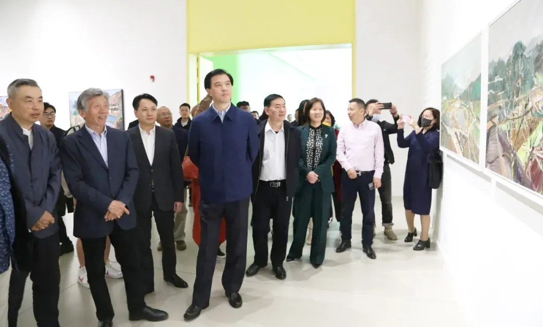开幕式结束后。李和平、范迪安等出席开幕式的领导和嘉宾参观了油画展,并与艺术家们热情交流。