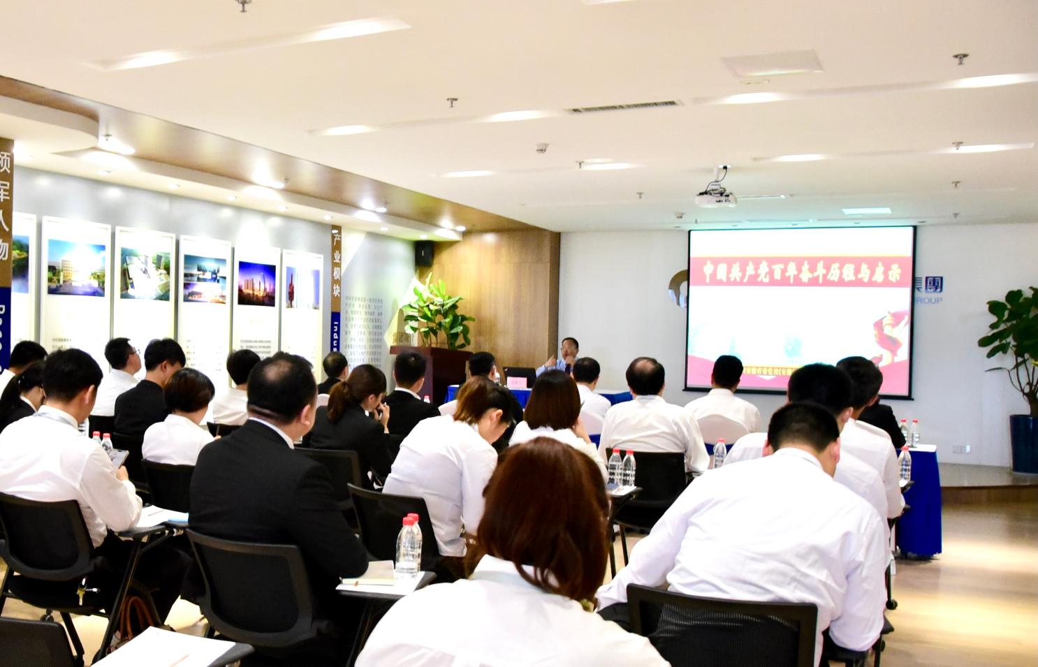 党员大会结束后,集团党委组织开展了红色献礼主题教育学习活动。全体党员听取了安徽省委党校张彪教授开展的题为“庆祝中国共产党成立100周年——《中国共产党百年奋斗历程与启示》”的党课宣讲。张彪教授从中国共产党诞生百年历程回望、学习中国共产党历史的现实意义、从中国共产党的历史中学习什么、学习中得到什么样的历史与启示四个方面回顾了中国共产党100年来波澜壮阔的历史。此次党课站位高、立意深,联系实际紧密,深入浅出,为与会党员自身发展和非公企业党建工作给予了深刻启示,把企业党建和企业经营发展结合起来,把企业建设同创造社会价值结合起来,以优异成绩迎接建党一百周年!