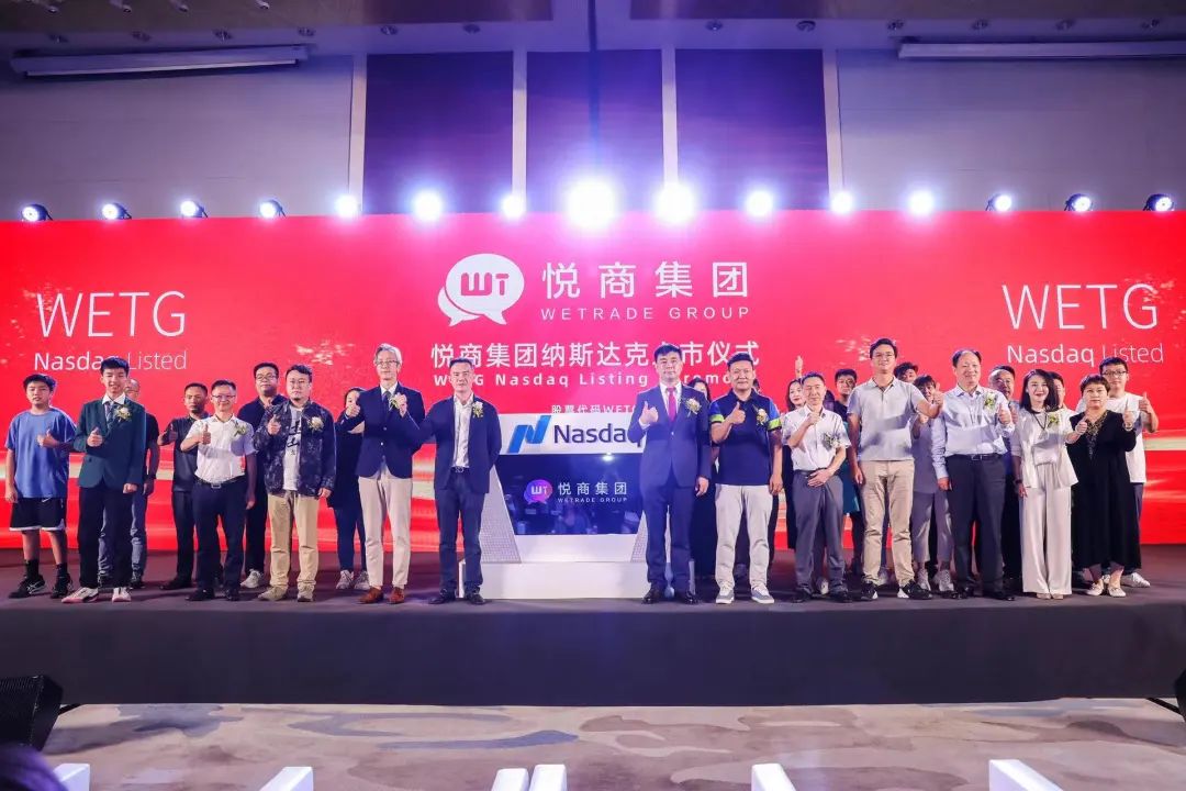 2022年7月21日,od平台入口官网有限公司(「中环控股」或「公司」,连同其附属公司统称为「集团」,股份代号:1735.HK)欣然宣布于北京时间2022年7月19日晚间成功助力悦商集团WeTrade Group INC.(「悦商集团」)(NASDAQ交易代码:WETG)在美国纳斯达克交易所挂牌开市,并受邀参加庆典。中环控股作为悦商集团的IPO辅导机构及基石投资者之一,全程参与并主导了悦商集团的纳斯达克IPO进程。据悉,公司成功助力悦商集团募资4000万美金,从OTC转板至纳斯达克交易所并最终完成IPO,并将在2022年7月21日或前后完成交割。