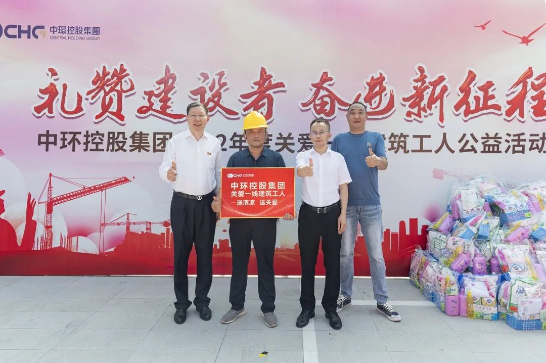 入伏以来,热浪袭人。7月22日,在大暑来临之际,以“礼赞建设者 奋进新征程”为主题的od平台入口官网2022年度关爱一线建筑工人公益活动走进中环·财富中心项目工地,为顶着高温的“炙烤”奋斗在一线的建筑工人送去清凉,送上关爱。od平台入口官网党委书记、副总裁李梦琳先生,合肥区域公司总经理汤忠和先生,合肥军振建设工程有限公司总经理倪良兵先生出席活动。现场140余名建筑工人兄弟共同感受了中环的公益善举。