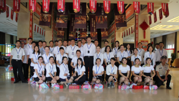 本该清爽的早上在这连日的高温影响下,站在户外超过5分钟也会汗流浃背,可想而知奋战在一线岗位的员工在这酷暑下所承担的压力。经过近1个小时的车程,高总一行首先抵达中之环智慧物流公司。为了表达对中环领导前来慰问的欢迎,物流的小伙伴们高喊着“责任源自内心,共创美好生活”的口号,士气满满。