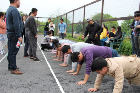 饱餐之后,迎来了重头戏——“数字大冒险”。北城项目全体伙伴移步至紫蓬山篮球场,在游戏开始之前,将大队伍分成五个组,进行手拉手水果蹬的热身活动,气氛一下热到爆,结果是菠萝蜜队胜出,其余四个队伍成员一一接受惩罚。