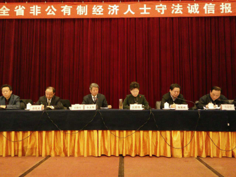 2月24日,全省非公有制经济人士手守法诚信报告会在合肥召开。安徽省委常委、统战部部长沈素琍,安徽省政府副省长、党组成员杨振超,安徽省政协副主席,安徽省工商联主席李卫华、省委统战部副部长、省工商联党组书记徐发成等领导参加会议。中环投资集团董事长余竹云出席报告会,并作为企业家代表作了主题为《做受社会尊敬的优秀企业》的专题报告。