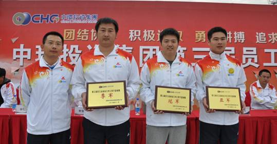 执行总裁乔晓戈为拔河比赛项目颁奖