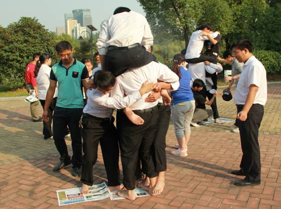 在竞技游戏环节,组织了“七人八足、挑战极限、夺军旗”等既有趣、又充分体现团队合作意识的训练项目。其中队员们勇于挑战,大胆尝试,总结反思的精神在本次拓展培训中表现的尤为突出。