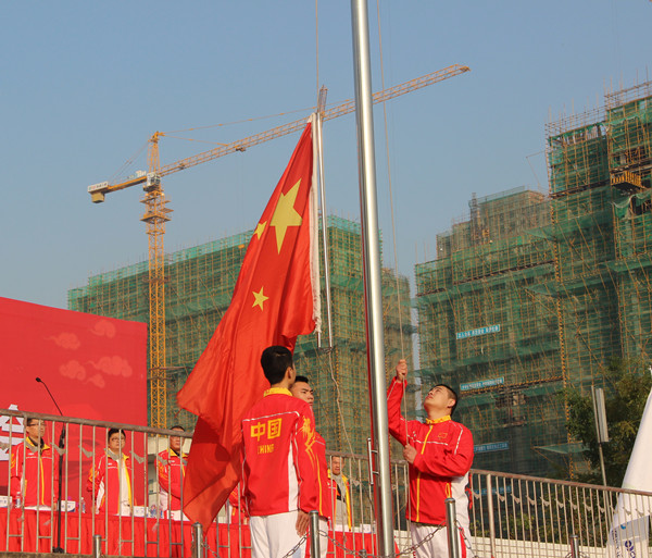 早上8点,开幕式准时开始。庄严肃穆的护旗手方阵首先入场。国旗、司旗、会旗方队踏着整齐的步伐,依次迈过主席台。随后,来自集团各中心、子公司的8支代表队喊着嘹亮的口号,陆续列队入场。整个入场仪式,井然有序,庄严隆重,激荡着更高、更快、更强的信念,表现了中环健儿们勇于拼搏、追求卓越的决心!