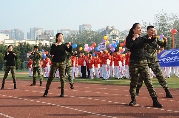 在开幕式上,每年例行的表演环节依旧充满着惊喜与期待。今年,物业公司的男子兵团与女子兵团齐齐上阵,表演的军体拳包括擒敌拳、棍术、头开钢板等,体现了过硬的业务素质和严格的训练标准。而接下来,商管公司表演的歌曲舞蹈《咋了爸爸》,飘荡着活力青春,体现了商管公司团队和谐友好的合作精神以及积极乐观的工作态度。