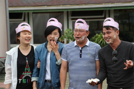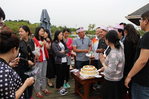 小憩一下,到了午饭时间,大家围坐在木屋度假村外的露天餐桌边,开启欢快的BBQ盛宴。身临紫蓬山,于绿野仙氧间,小伙伴们赏着美景、吃着美食,其乐融融,欢声笑语不断。其间穿插了北城项目公司3、4月份员工的生日会,再次体现了公司的人文关怀,令大家感受到中环大家庭的温暖。