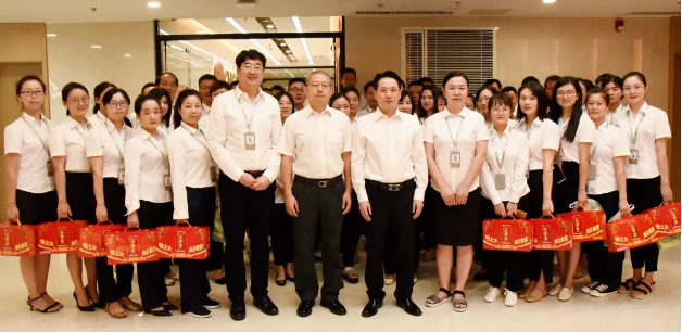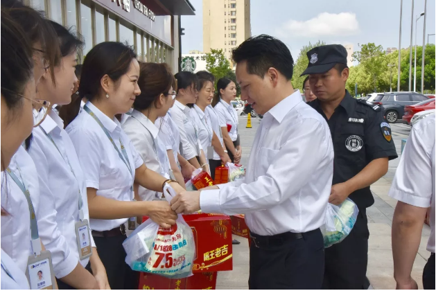8月12日上午,董事长余竹云在集团领导的陪同下,先后走进集团总部、商管公司,看望慰问各业务口上的一线员工,亲手为他们送上清凉物品,并对他们的坚守岗位表示深深的感谢。