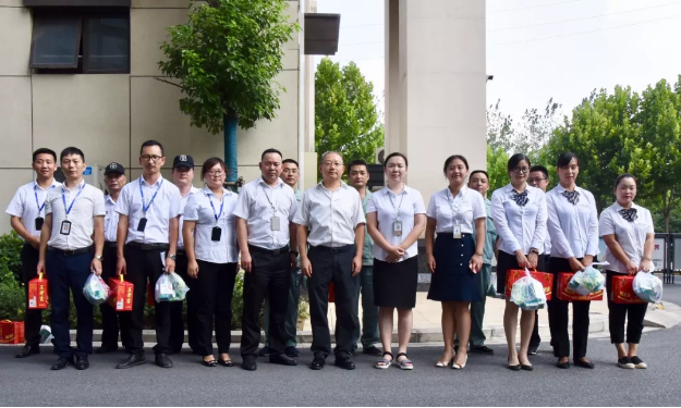 8月8日,集团总裁乔晓戈,集团副总裁朱玉娟在物业公司总经理陶龙、工会主席姚金嫚等人的陪同下,深入中港物业公司各个物业服务管理中心,看望慰问奋战在生产一线的物业人员。